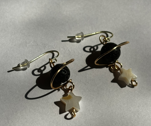 An extra twist on the classic Juno Earrings, these have a star shell cut out at the bottom to give it an extra spacey look to it and make your outfits out of this world! 🪐💫☄️